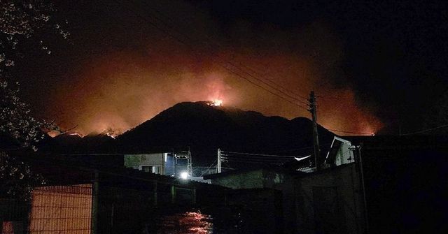 경남 산청에서 발생한 산불 9일째인 29일 산림 당국이 마지막 남은 화선인 지리산권역 주불 진화를 목표로 진화작업을 이어가고 있다. 사진은 이날 오전 4시경 산청군 일대의 모습 / 동물구호단체 쏘바이 제공