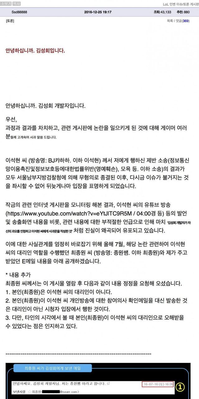 1. 난 종원쌤(캬하하 쉴드쳐줬던 사람)한테 말 거칠게 한 걸 사과한 거다.