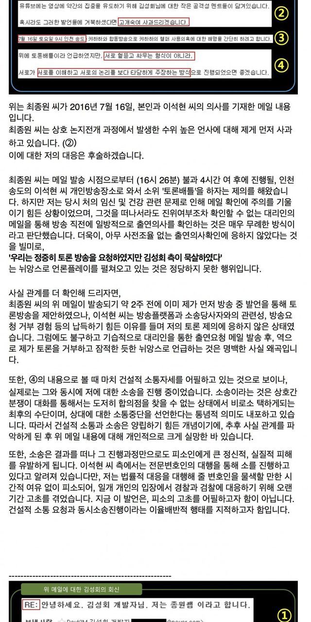 3. 캬하하는 나한테 사과 받은 것처럼 언론플레이 하지 마라.