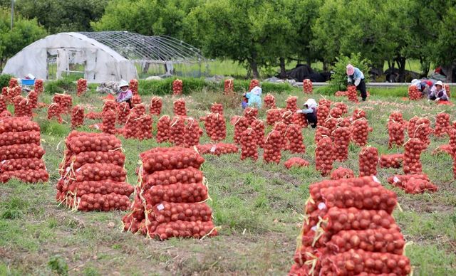 경북 청도군 각남면 한 양파밭에서 농민들이 비 소식을 앞두고 부지런히 양파를 수확하고 있다. / 뉴스1