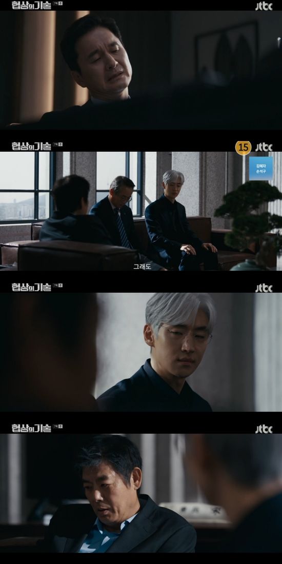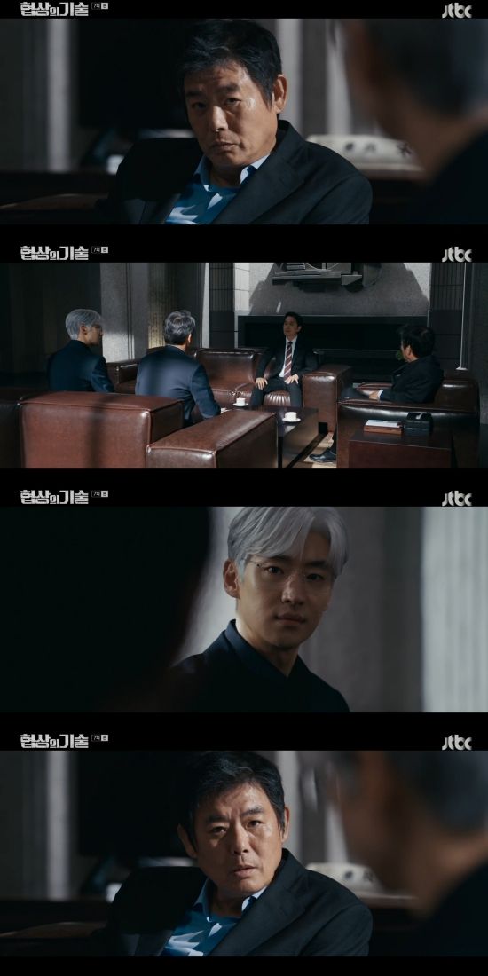 29일 방송된 JTBC 토일드라마 '협상의 기술' 7회에서는 윤주노(이제훈 분)와 하태수(장현성)가 송재식(성동일)이 주식을 담보로 빌린 5백억을 상환하는 방법을 두고 갈등하는 모습이 그려졌다.