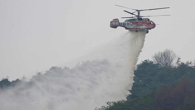 산림청 헬기가 방수 작업을 벌이고 있다 / 연합뉴스