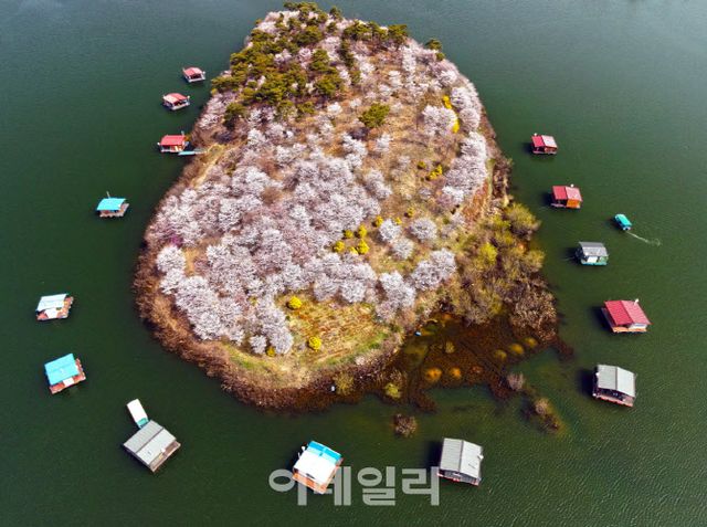 진천군 초평호에는 봄이면 ‘벚꽃섬’이라 불리는 꽃섬이 나타난다. 초평저수지 내 작은 섬인 붕어섬은 봄이면 온통 벚꽃으로 뒤덮여 환상적인 풍경을 연출한다. 특히 섬의 풍경을 한눈에 담을 수 있는 ‘진천 한반도지형전망공원’에 오르면 더욱 멋진 광경을 마주할 수 있다.