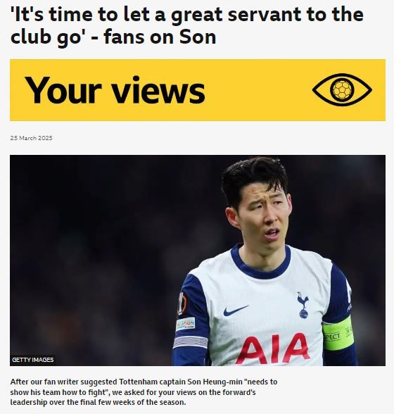 'BBC'는 앞선 25일, 손흥민의 리더십에 대한 팬들의 생각을 전하기도 했다.