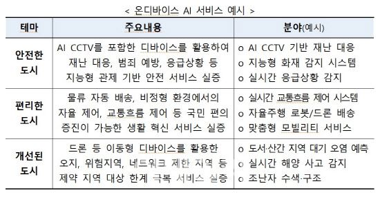 이번 과제 공모는 국산 AI 반도체를 활용한 온디바이스 AI 기반의 혁신 서비스를 발굴하고, 도시 단위의 대규모 실증을 통한 효과성 검증 및 생태계 활성화를 목표로 한다.