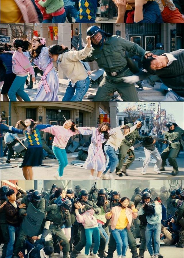 80년대 시위 현장을 웃긴 장면으로 바꿔