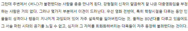 - 당시 영화 "써니"에 대한 일부 여론 -