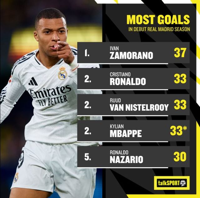 레알 데뷔 첫 시즌 최다 득점 기록은 1992-1993시즌 칠레의 레전드 공격수 이반 사모라노가 세운 37골이다. 이제 레알 데뷔 시즌에서 음바페보다 더 많은 골을 넣은 선수는 사모라노뿐이다.