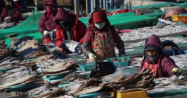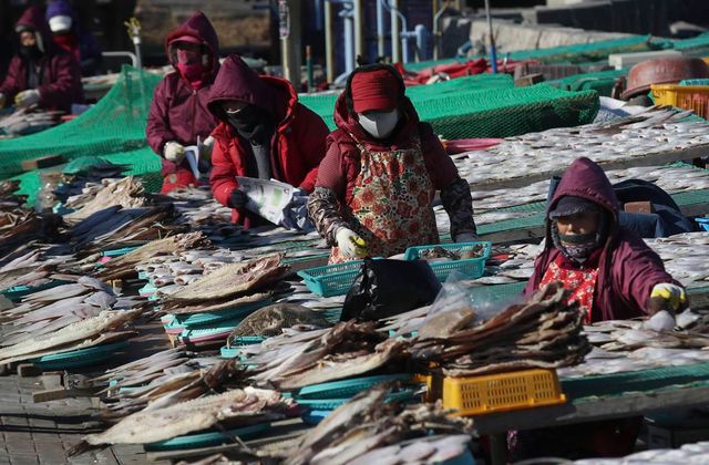 울산시 북구 정자항에서 어민들이 추위를 견디며 말린 가자미와 도루묵 등을 손질하고 있다 / 뉴스1