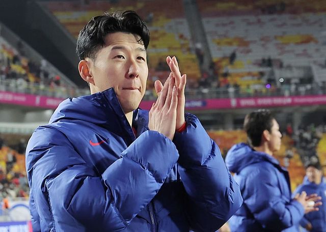 25일 오후 경기도 수원시 팔달구 수원월드컵경기장에서 열린 2026 국제축구연맹(FIFA) 북중미 월드컵 아시아 3차 예선 B조 8차전 대한민국과 요르단의 경기를 무승부로 마친 손흥민을 비롯한 축구대표팀 선수들이 피치를 돌며 팬들에게 인사하고 있다. / 뉴스1