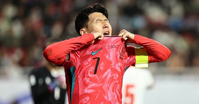 25일 오후 경기 수원월드컵경기장에서 열린 2026 국제축구연맹(FIFA) 북중미 월드컵 아시아 3차 예선 B조 8차전 대한민국과 요르단의 경기, 대한민국 손흥민이 공격에 실패하자 아쉬워하고 있다. / 뉴스1