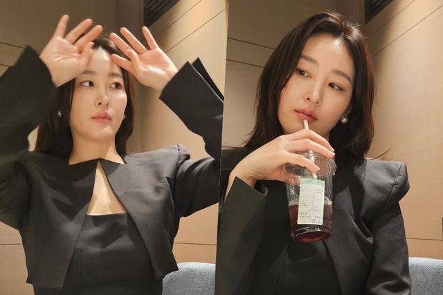 블랙 톱에 크롭 자켓을 입고 휴식을 취하고 있는 신아영은 차분하면서도 우아한 분위기로 눈길을 끌었다. 특히 커피를 마시며 어딘가를 응시하고 있는 모습에서는 센치한 무드까지 더해져 보는 이를 매료했다.