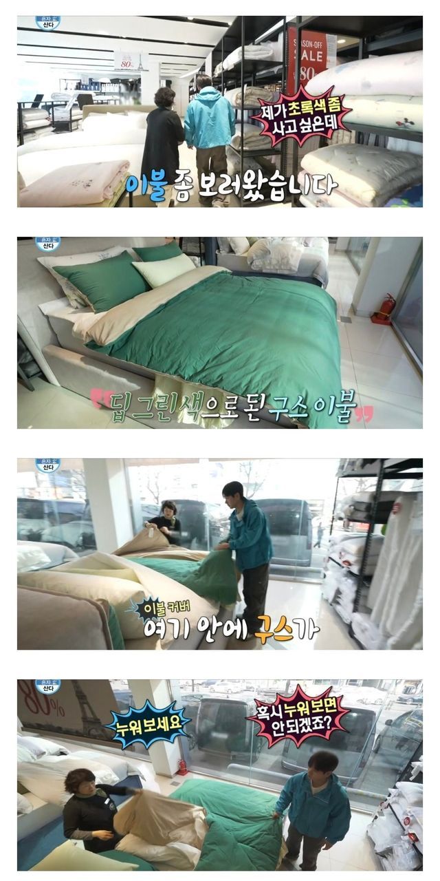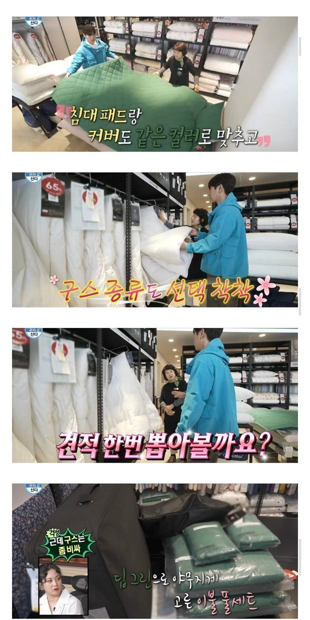 나혼자산다 딥 그린 컬러로 침구류 맞춤