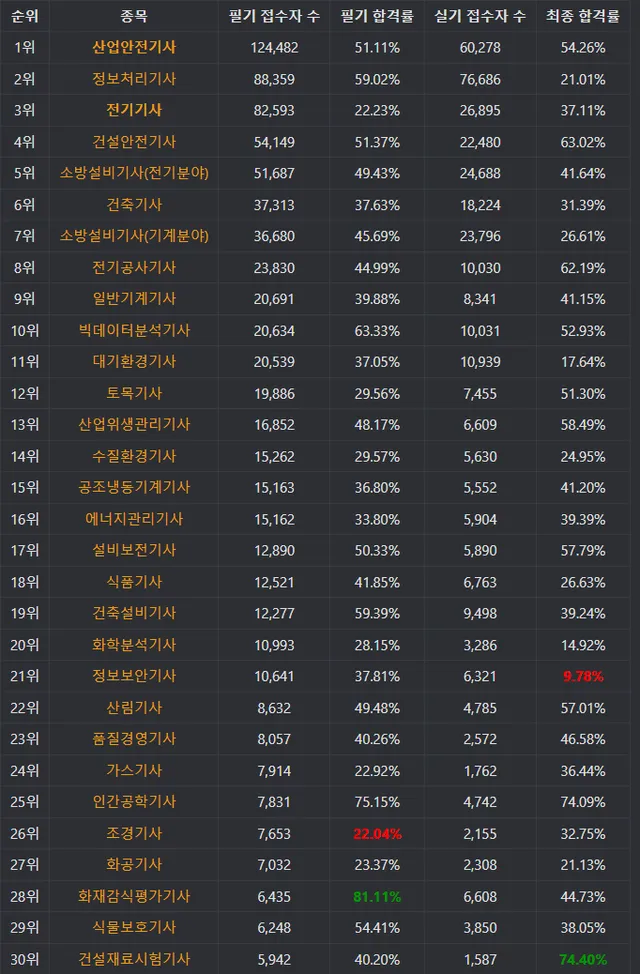 이전 정보처리기사는 응시자격만 있다면 초딩도 한달 공부해서 딸 수 있다는 말이 나돌 정도로 쉬운 난이도와 비슷한 문제 우려먹기가 많아서 기사자격증 중 최하난이도를 자랑했는데
