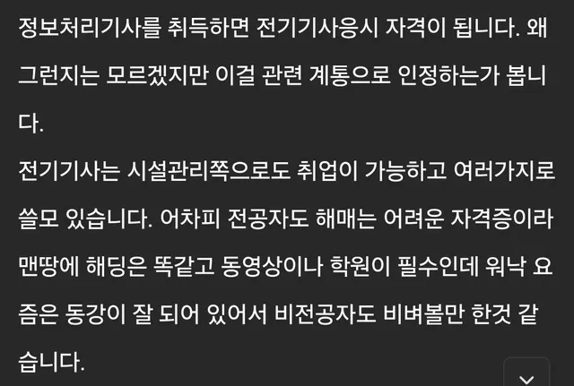 GPT도 오히려 정보처리기사 대신 건설기사가 낫다고 하는 수준까지 와버렸다.