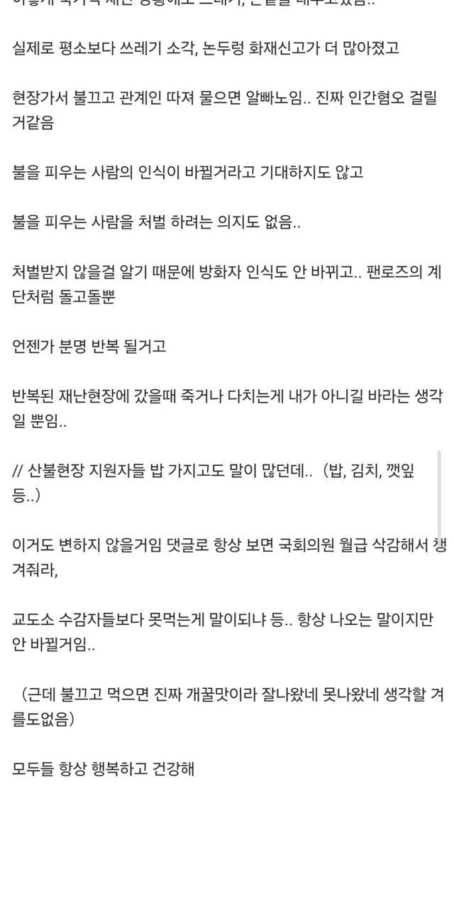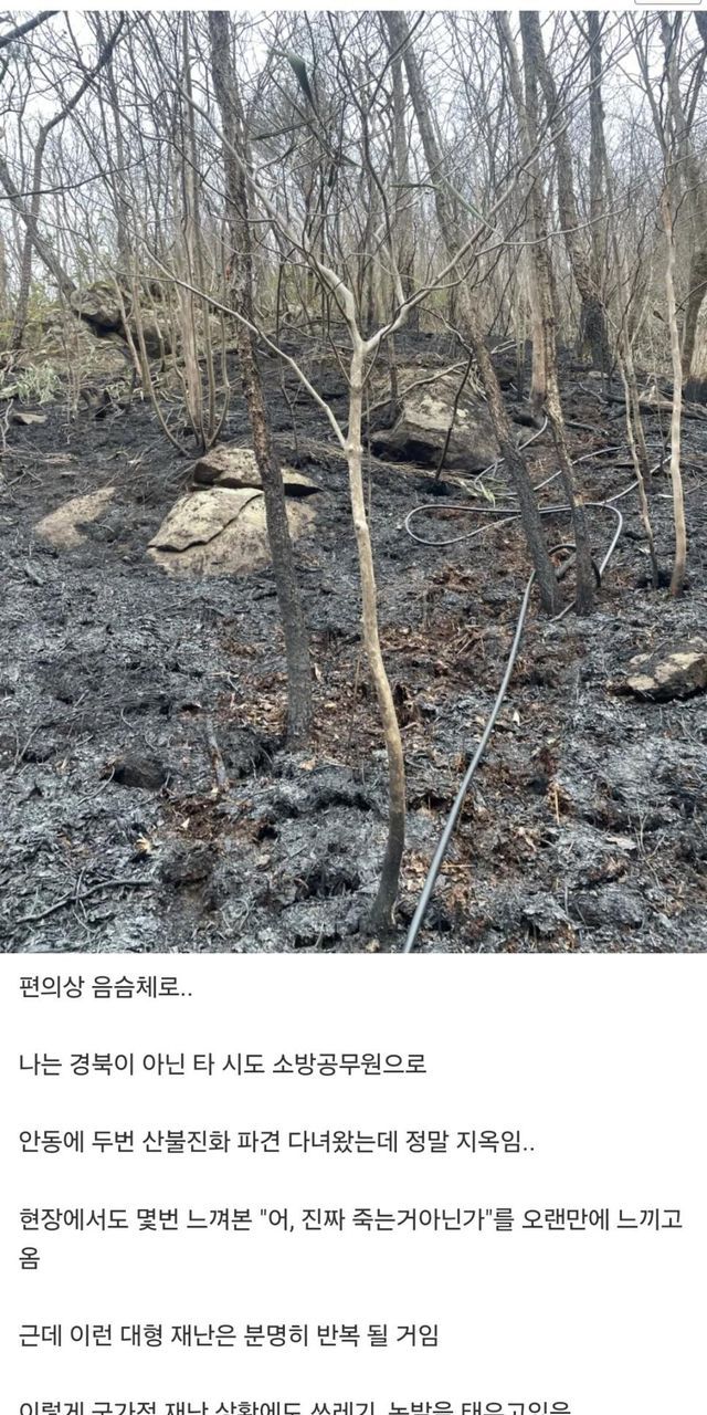 사람들 오갈데가 없어지고 죽는정도의 산불이 나는데