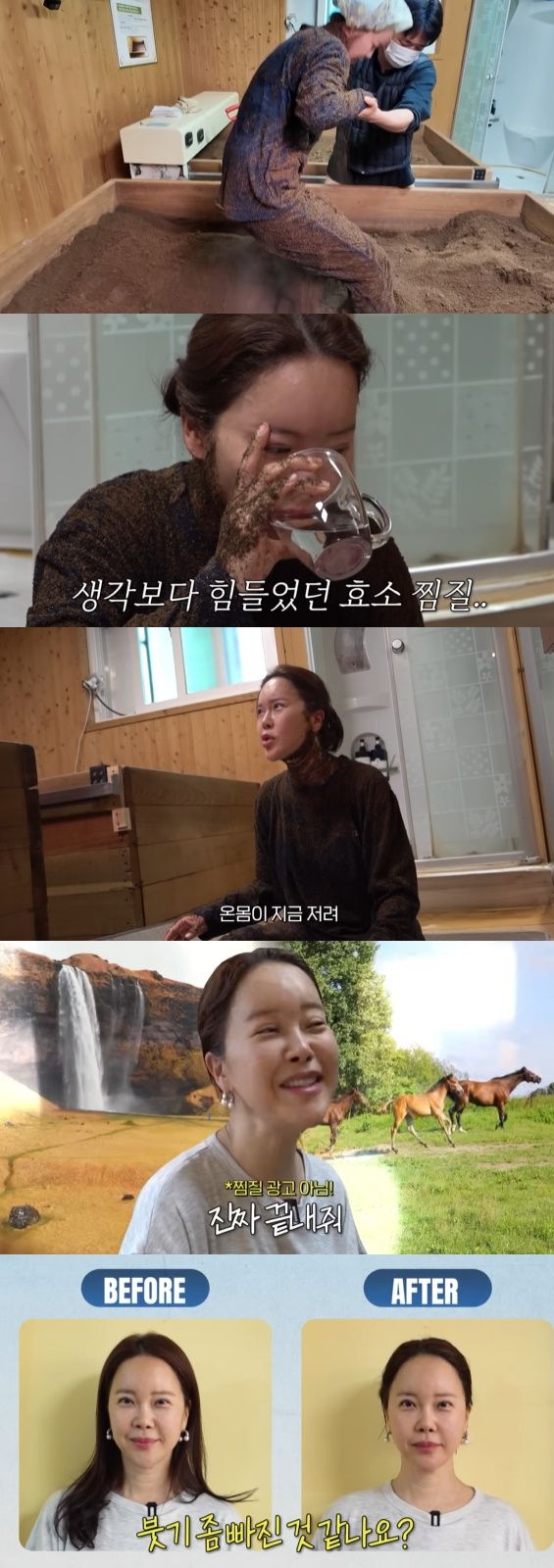 백지영은 부기를 빼기 위해 효소 찜질방으로 향했다.