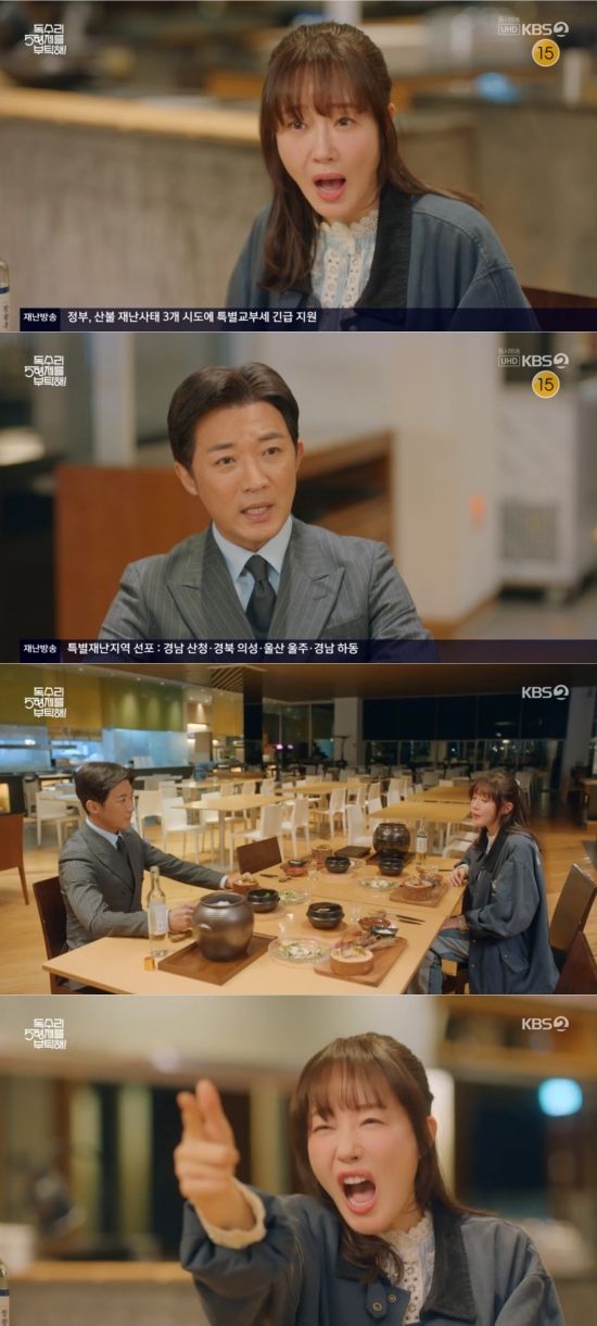 30일 방송된 KBS 주말드라마 '독수리 5형제를 부탁해!'(이하 '독수리 5형제') 18회에서는 마광숙(엄지원 분)이 한동석(안재욱)에게 주정을 부린 모습이 그려졌다.