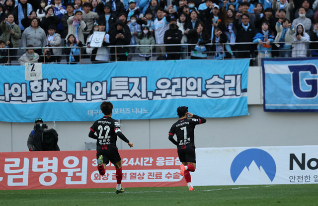 “귀에 손을?”… 대구 팬 향한 도발적 세리머니, 그라운드도 ‘들썩’