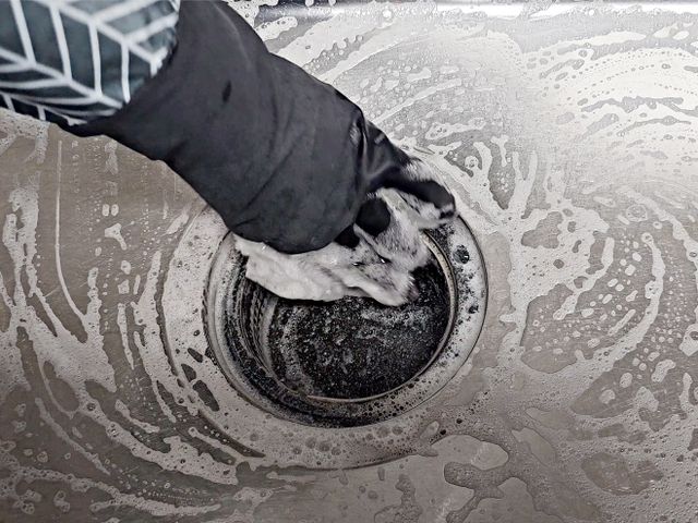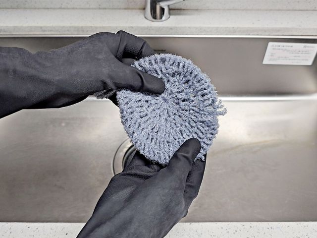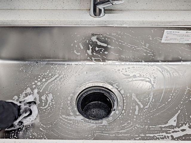 뽁뽁이수세미에 세제 묻혀서 싱크대 구석구석 청소하고