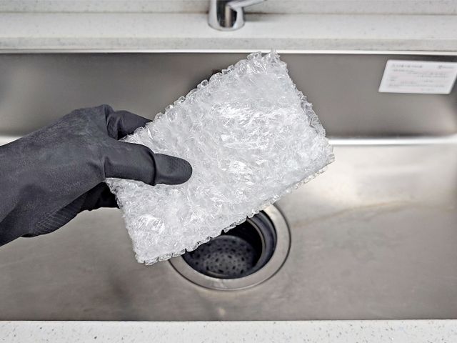 뽁뽁이 수세미는 흐르는 물로 헹궈서 버리기만 하면 돼요.