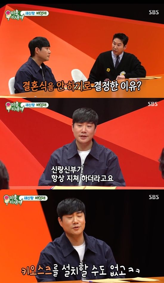 (엑스포츠뉴스 장인영 기자) 배성재 아나운서가 예비신부 김다영과 결혼식을 올리지 않을 예정이라고 말했다.