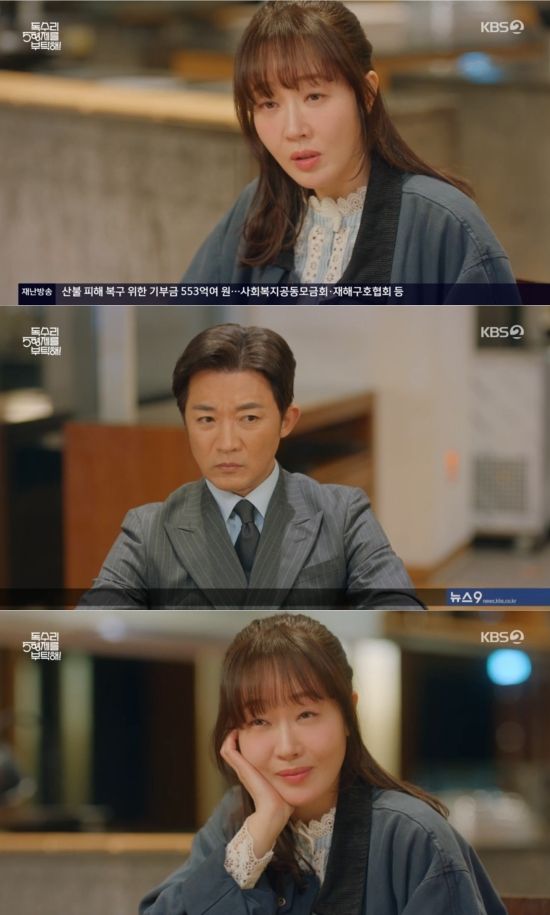 30일 방송된 KBS 주말드라마 '독수리 5형제를 부탁해!'(이하 '독수리 5형제') 18회에서는 마광숙(엄지원 분)이 한동석(안재욱)에게 주정을 부리고 사과한 모습이 그려졌다.