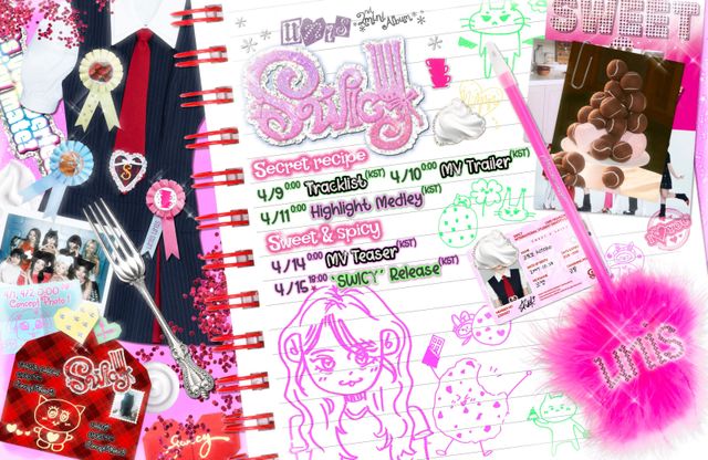 공개된 스케줄러 속에는 핑크색 레시피북 위로 ‘스위시’ 프로모션 일정이 빼곡하게 펼쳐져 있다. 유니스의 영한 에너지와 키치한 무드를 극대화하듯 교복, 학생증, 쿠키, 포크 등으로 아기자기하게 꾸며진 디자인이 눈길을 끈다.