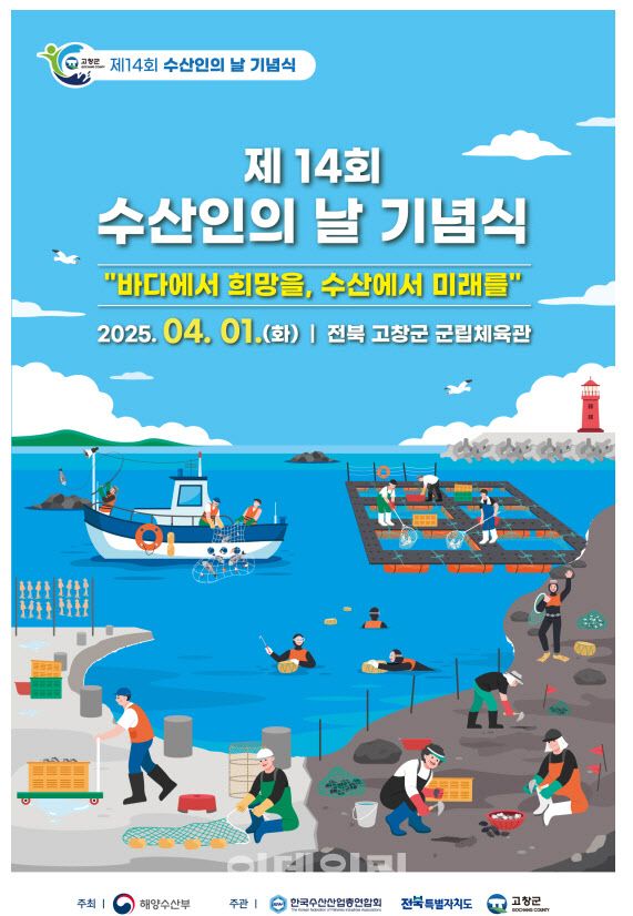 14회째를 맞은 이번 기념식에는 강도형 해수부 장관과 윤준병 더불어민주당 의원, 김관영 전북도지사, 심덕섭 고창군수, 노동진 한국수산산업총연합회장, 수산 단체당을 비롯해 해양수산업 관계자 및 수산인 등 1500여명이 참석한다.