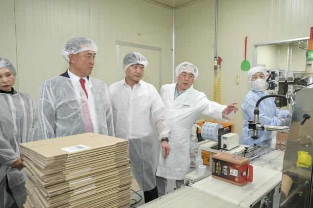 이충우 시장은 제조시설을 둘러보며 최신 설비와 위생적인 공정 과정을 확인했고 ㈜헬스앤라이프 임직원들의 다양한 목소리를 청취했다.