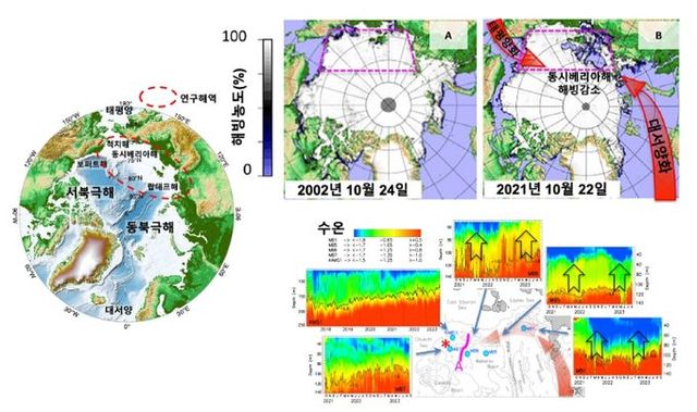 극지연구소 조경호ㆍ정진영ㆍ양은진 박사 연구팀은 미국 알래스카 대학교 등과 함께 2017년부터 7년간 서북극해의 동시베리아해에 한국형 장기계류관측시스템을 운용해 대서양화 현상이 강화되는 것을 확인했다.