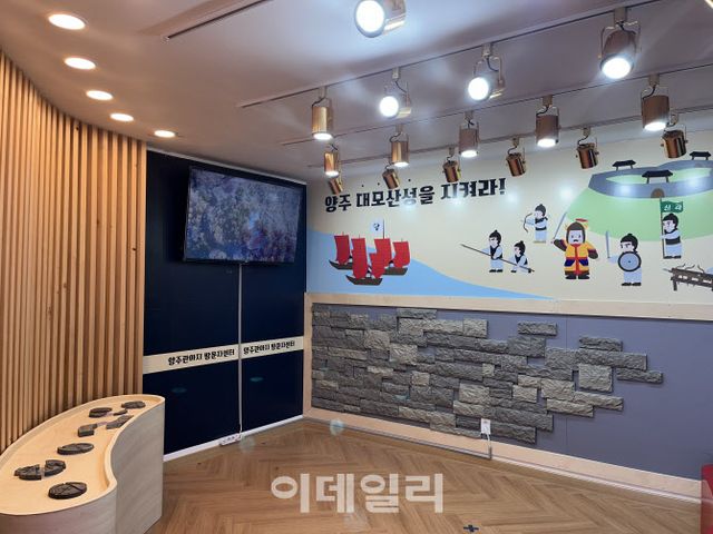 양주관아지 방문자센터 내부는 양주 대모산성 쌓기와 유물 접합 체험, VR 체험을 할 수 있다.