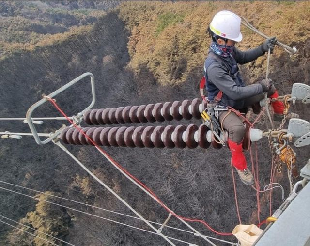 31일 한전에 따르면 이번 산불로 송전철탑 550기와 변전소 22개소 등이 직·간접 영향을 받았다. 직접적인 피해만 송전선로 애자(뚱딴지) 840개와 전주 240기, 237경간(철탑간 전선 단위)의 전선 등 약 15억원 규모다.