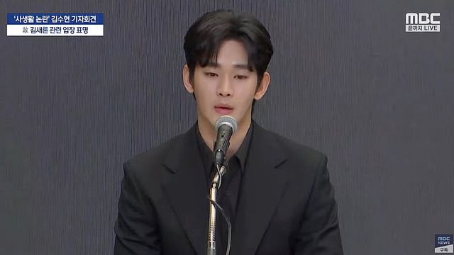 김수현은검은색 정장 차림으로 31일 서울 마포구 스탠포드호텔에서 열린 기자회견에 참석했다. 그는 "먼저 죄송하다. 저 하나로 인해 많은 분들이 고통받고 계신 것 같다"고 말문을 열었다. 이어 "고인(김새론)이 편히 잠들지 못하는 것 같아 안타까운 마음 뿐"이라고 고 김새론을 언급했다.