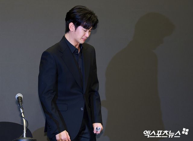 31일 오후 서울 마포구 상암 스탠포드호텔에서 배우 김수현의 기자회견이 진행됐다. 이날 김수현은 소속사 골드메달리스트이 법률대리인인 법무법인 엘케이비앤파트너스 김종복 변호사와 함께 자리했다.
