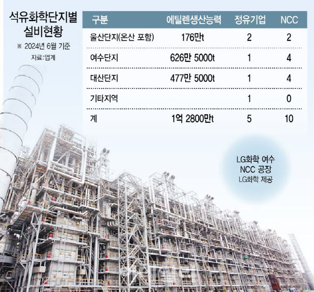 이번 석화 사업재편의 핵심은 과잉 상태인 NCC(나프타 분해 설비)를 축소하는 데 있다. 중국은 2018년부터 석화 자급화를 추진하며 대규모 설비 증설을 추진하고 있다. 전 세계 에틸렌 생산능력은 2020년부터 2024년까지 약 4500만톤(t)이 확대됐는데, 이 중 2500만t은 중국 내 설비확충에 따른 것이다. 이는 중동 전체 생산능력의 70%, 한국 총 생산 능력의 2배에 달하는 수준이다. 그동안 국내 석화업체들의 주요 수출처였던 중국이 최근 몇 년 새 저렴한 원가로 제품을 대량 생산하며 한국에서 중국으로 향하는 수출 물량이 급격히 줄어든 것이다.