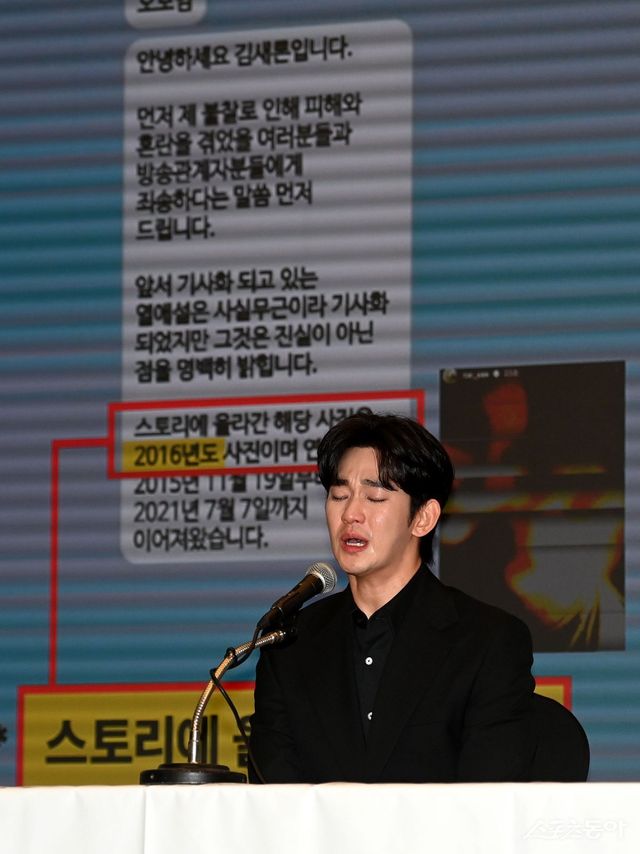 배우 김수현이 고(故) 김새론과 자신을 둘러싼 각종 의혹에 대해 긴급 기자회견을 열고 눈물을 쏟았다.