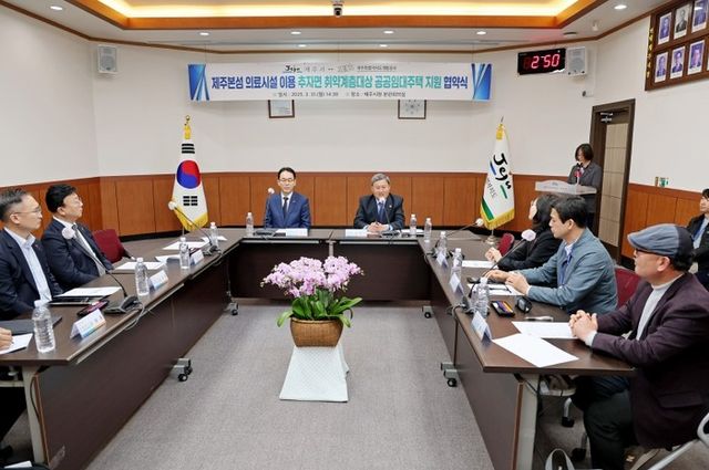 [파이낸셜경제=김예빈 기자] 제주시는 3월 31일 시청 본관 회의실에서 제주특별자치도개발공사와 추자도 주민의 의료 접근성 향상을 위한 공공임대주택 지원 업무협약을 체결했다.