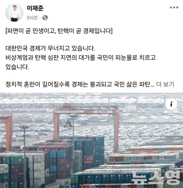 그러면서 “정치적 혼란이 길어질수록 경제는 붕괴되고 국민 삶은 파탄”이라며 “모든 경제 지표들이 이를 반증하고 있다”고 강조했다.