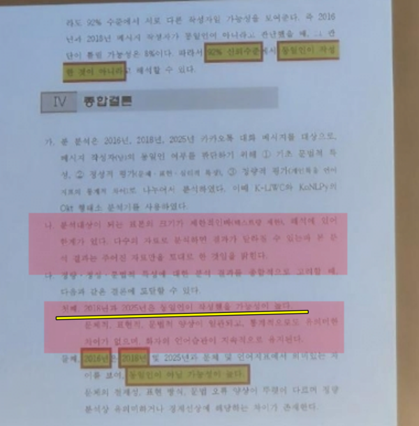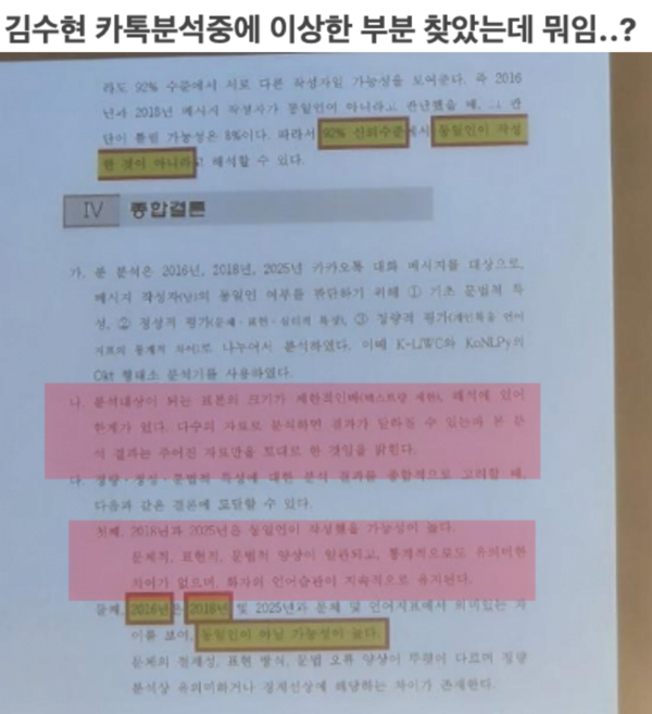 일부 네티즌들은 "카톡 말투로 동일인을 감별한다는 것이 말이 되느냐", "필적 감정도 아니고 메시지 습관으로 동일인 여부를 판단하는 것이 법적 증거로 인정될 수 있을까"라며 반신반의하는 반응을 보였다.