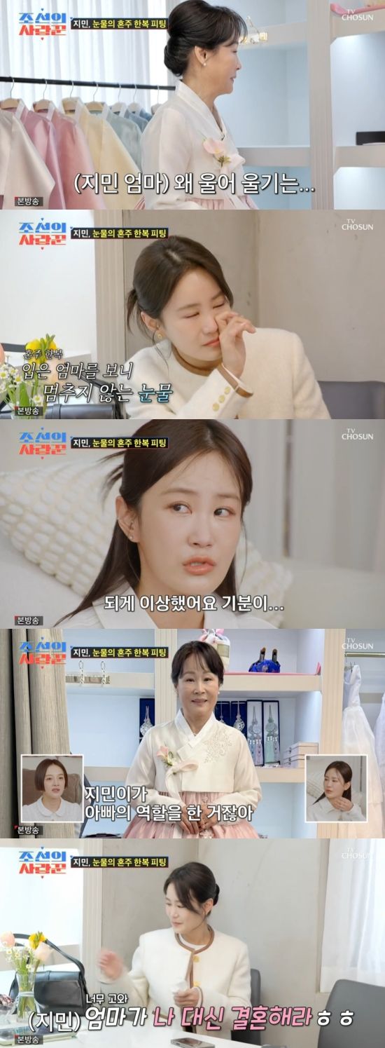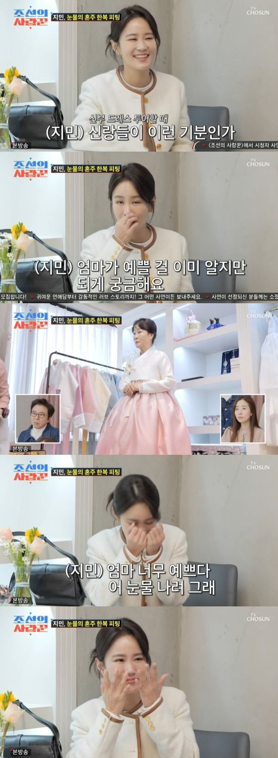 31일 방송된 TV조선 '조선의 사랑꾼'에서는 김지민이 혼주복을 입은 김지민 어머니를 보고 눈물 흘린 장면이 전파를 탔다.