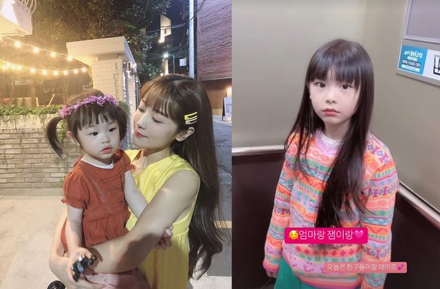 공개된 사진 속 두 모녀는 똑 닮은 풀뱅 앞머리와 긴 생머리 스타일을 선보이며 사랑스러운 모습을 뽐냈다.