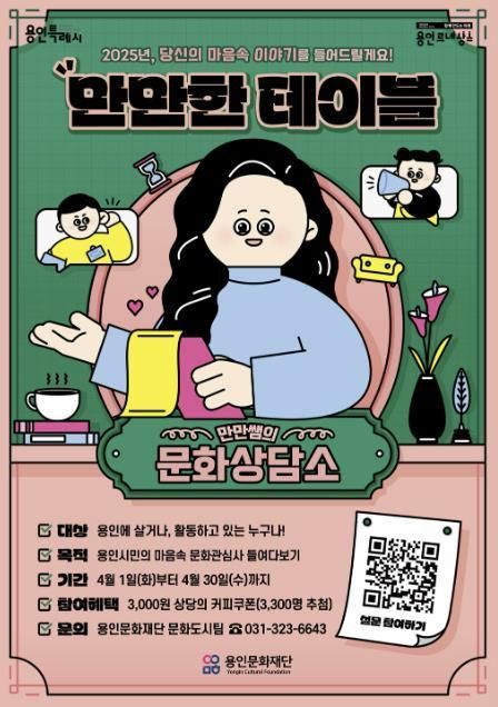 [와이뉴스] 용인문화재단은 용인 시민의 문화 관심사 파악을 위해 시민 의견 수렴 프로젝트인 ‘2025 만만한 테이블’을 4월에 진행한다.
