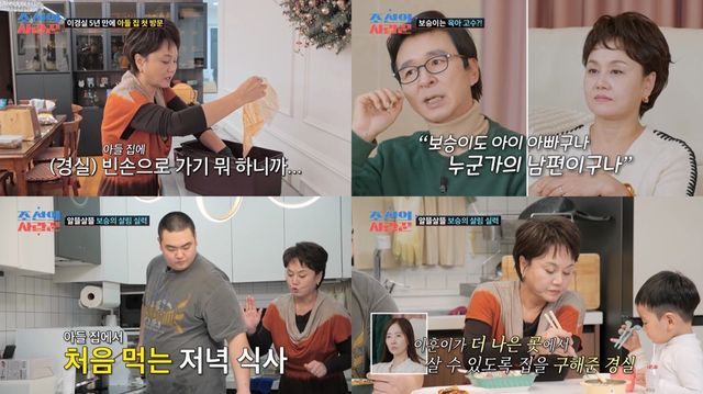 사랑꾼 스튜디오에는 ‘새로운 사랑꾼’ 이경실이 초대 손님으로 방문했다. VCR에서는 아들 손보승과 화해한 이경실이 5년 만에 아들 세 식구가 사는 집을 방문하는 모습이 공개됐다. 양손 가득 반찬을 들고 아들 집에 입성한 이경실은 재빨리 ‘매의 눈’으로 집을 스캔한 끝에 “깔끔하게 잘 산다”며 칭찬을 아끼지 않았다.