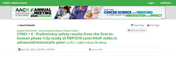 프레스티지바이오파마 관계자는 “이번 AACR에서 항-PAUF 항체에 대한 글로벌 IP를 보유해 독보적으로 이를 활용한 기술을 개발할 수 있는 유일한 회사로서 PBP1510의 첫 임상 성과 관련 초록이 포스터 발표를 위해 선정됐다”며 “앞으로 췌장암 조기 진단 키트 출시와 임상 1상을 빠르게 완료하고 췌장암 생태계를 구축하는 올해 목표를 달성하기 위한 투트랙 행보를 이어갈 것”이라고 말했다.