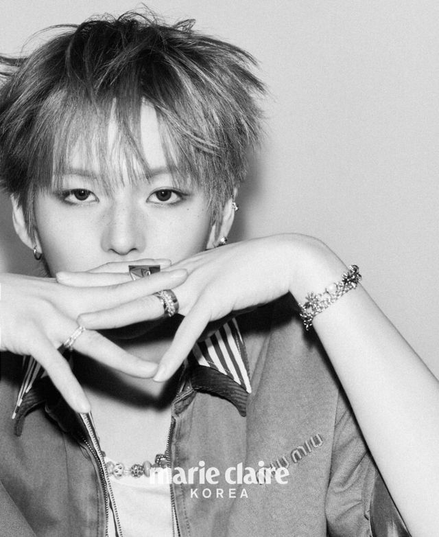 지훈 슬리브리스 톱 From Arles, 데님 팬츠 Bonbom, 실버 링 Chrome Hearts.