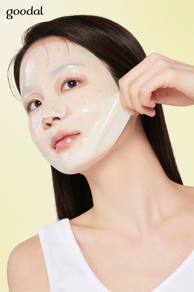 청귤 비타C 잡티 흔적 케어 겔 마스크 착용 사진 / 구달 제공