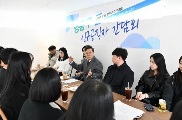 3월 5일자에 발령된 13명의 신규공직자들은 이번 간담회에서 지난 1개월 간 공직생활 중 각자가 느꼈던 소감과 경험했던 애로사항을 공유했으며, 박사승 영통구청장은 이들과 함께 대화하고 격려하면서 새로 발급된 공무원증을 직접 전달했다.