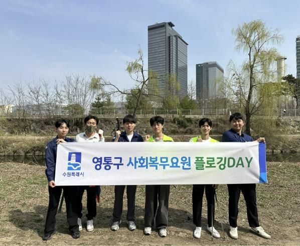 [와이뉴스] 수원시 영통구는 지난 31일 새봄을 맞이하며 매여울근린공원과 원천리천에서 사회복무요원의 건강하고 활기찬 복무환경 조성을 위해‘플로깅(Plogging)’을 실시했다.