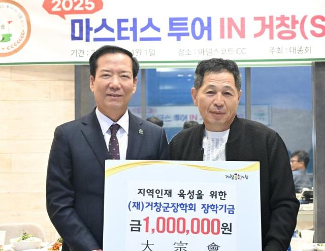 [파이낸셜경제=김예빈 기자] (재)거창군장학회는 지난 31일 지역인재 육성을 위해 대종회(大宗會)에서 ‘2025 마스터스 투어 In 거창(Spring)’ 경기 중 회원들이 모은 성금 100만 원을 장학회에 기탁했다고 밝혔다.